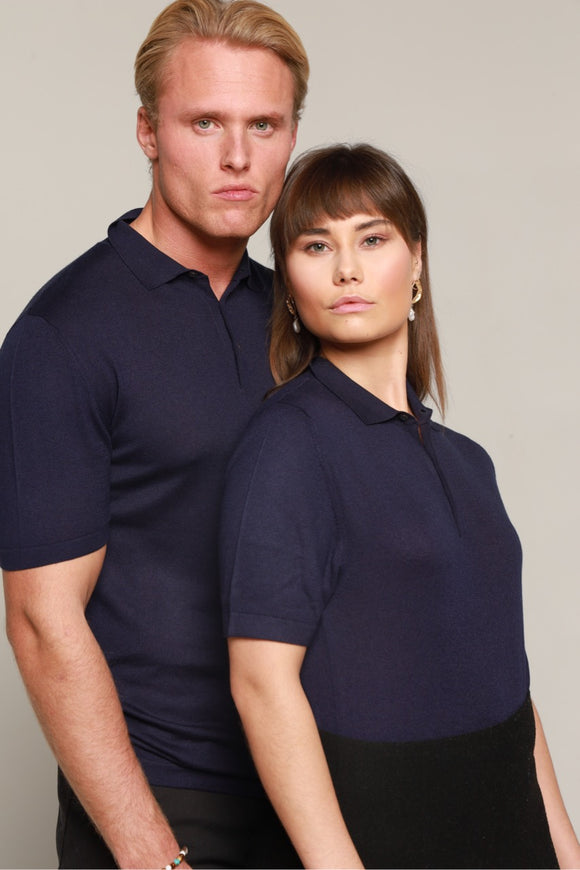 Polo i kashmir og silke mix mørkeblå