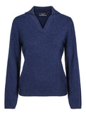 Klassisk demin kashmir genser med v-hals og krage