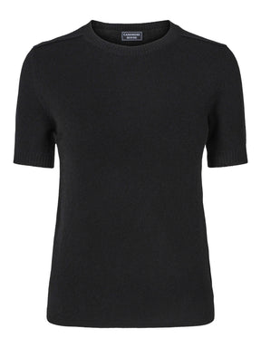 En moderne vri på den klassiske T-skjorten – denne modellen er strikket i 100 % luksuriøs kasjmir og har synlige skuldersømmer som gir et diskret, men edgy uttrykk. Den har en avslappet passform, rund hals med ribbestrikket kant og brede ribbedetaljer på ermene som gir et markert og sofistikert preg.