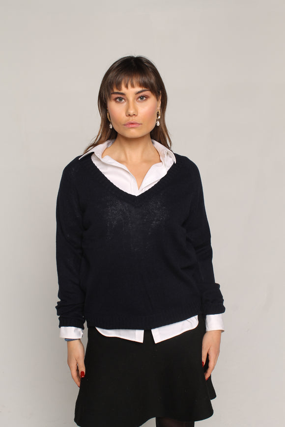 V-hals kashmirgenser marineblå