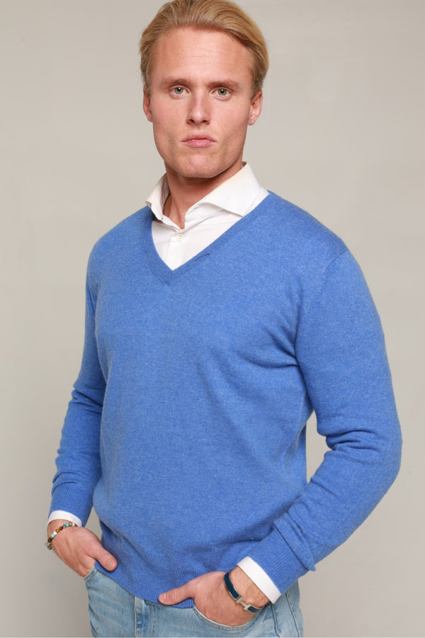 Discover a premium cashmere V-neck sweater, made from 100% Mongolian cashmere. This sweater is knitted in 12 gauge (mesh width) with 2 ply and hard-spun yarn, giving it an unparalleled combination of durability, softness and warmth.