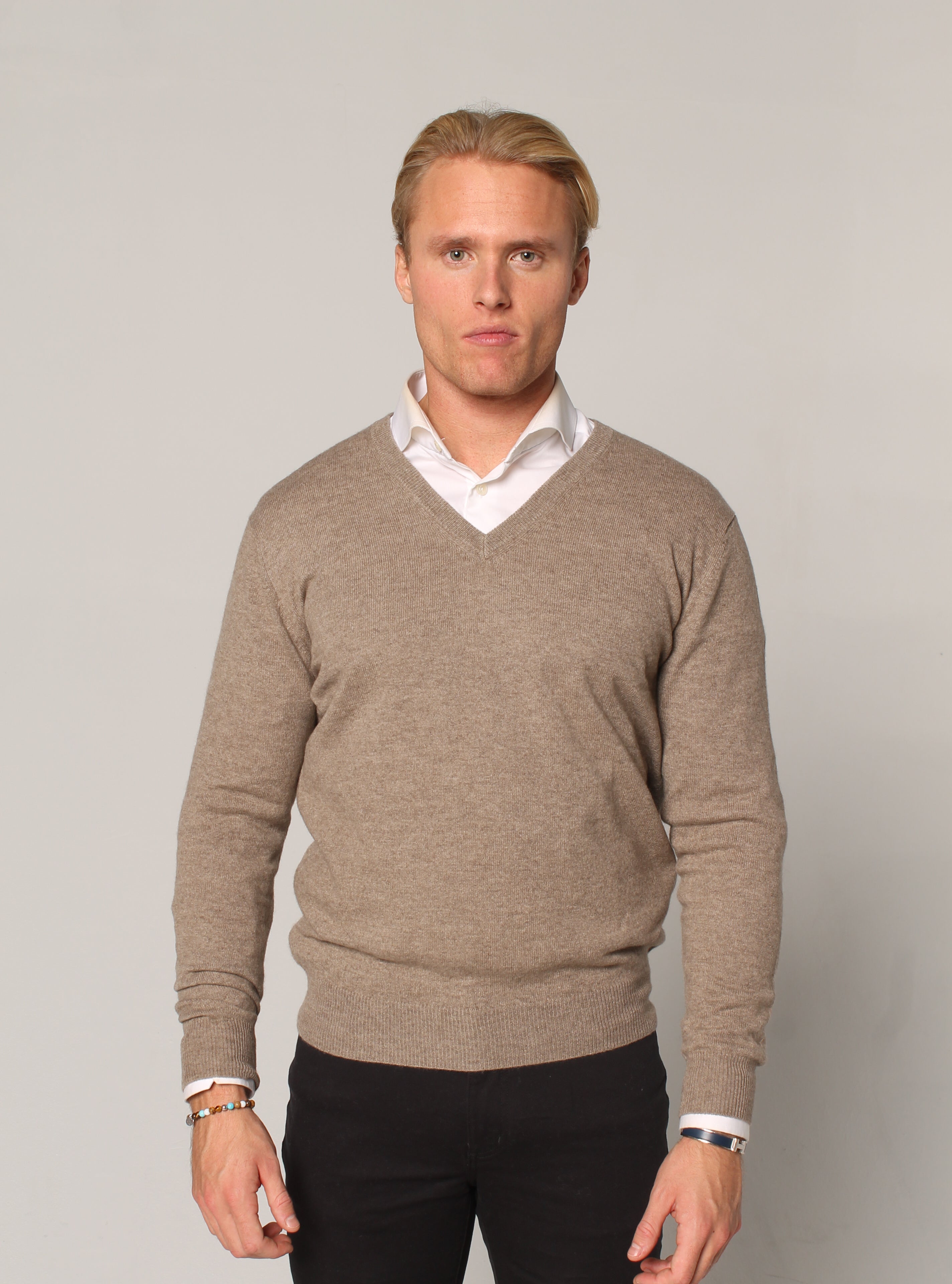Denne genseren med V-hals er et tidløst plagg som tilfører en touch av luksus til enhver garderobe. Den høye kvaliteten på den Mongolske kashmiren sikrer at du får et plagg som både ser fantastisk ut og føles utrolig behagelig. Perfekt for den stilbevisste mannen som setter pris på kvalitet og komfort!
